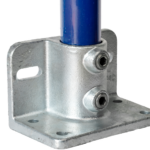 A base flange fitting with toe board attachment facility. It is ideal as a base for the vertical on guardrails where the addition of a toe board or kicking flat is required.